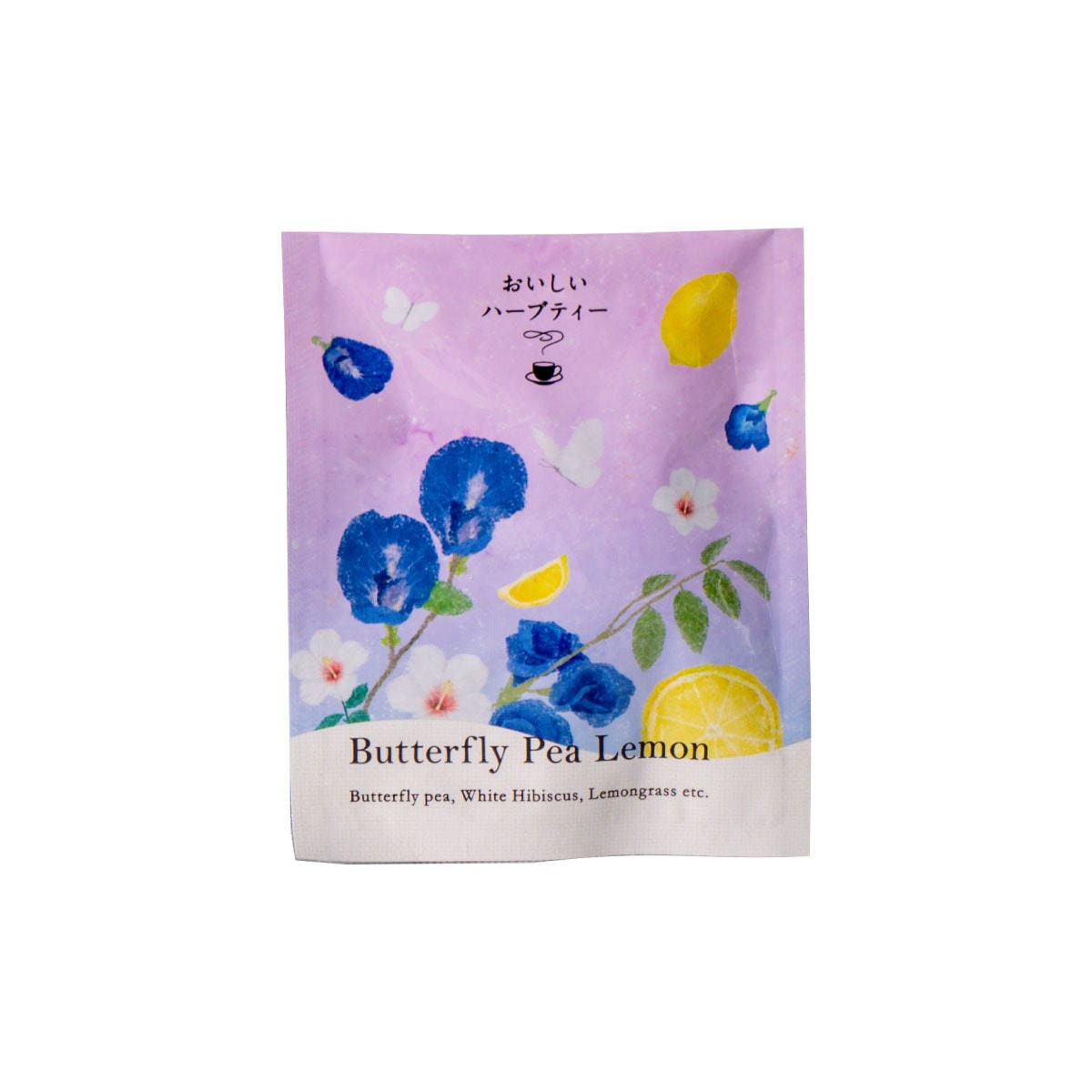 ホワイトハイビスカス、バタフライピー、レモングラス、ペパーミント、ジンジャー、レモンピール、ステビア、香料